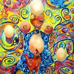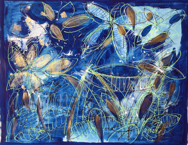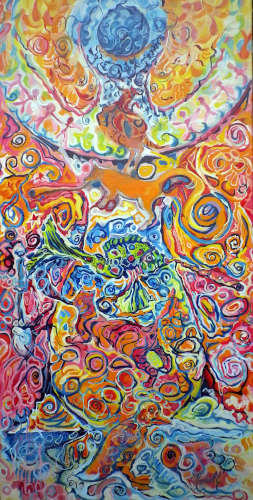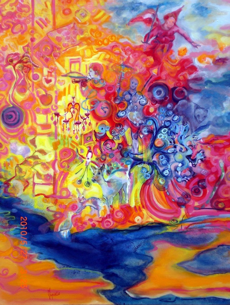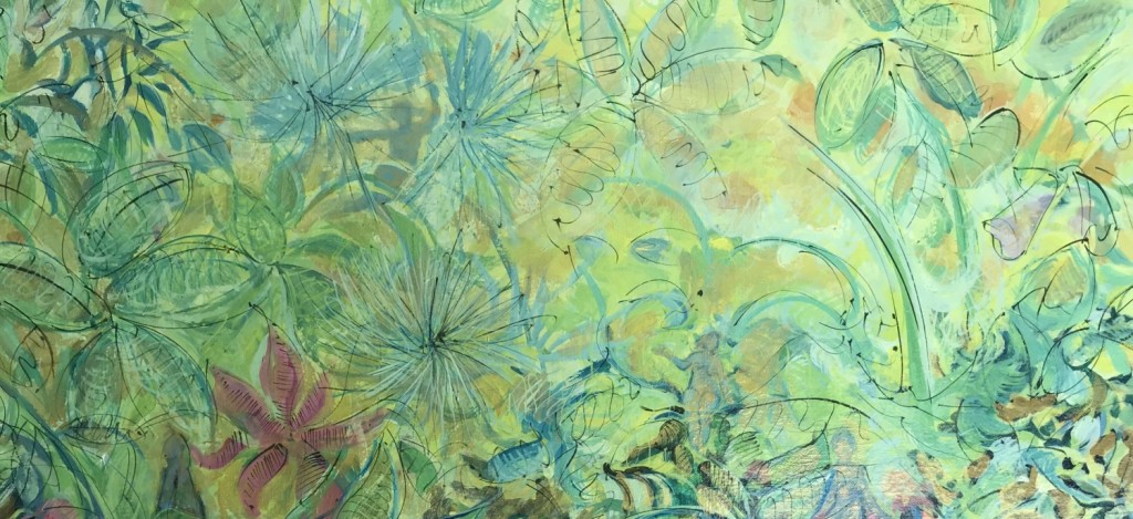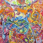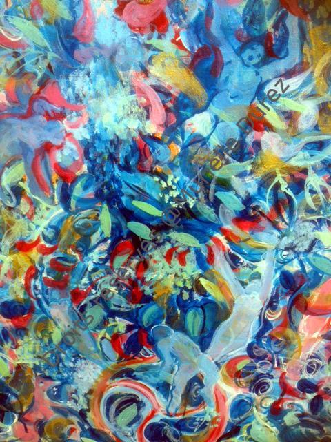 Le dessin initial parfois se répète et tend à disparaitre sous les multiplications d’éléments jusqu’à la mise en place d’un nouvel équilibre de masse colorées .